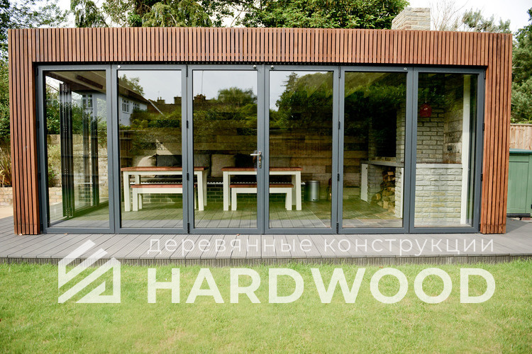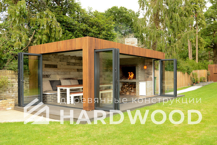 Закрытую или тёплую беседку с панорамным остеклением, продуманной вентиляцией и стабильной тягой. Добавьте тёплые полы/ИК-обогрев и получите «летнюю кухню», которой удобно пользоваться и в межсезонье.