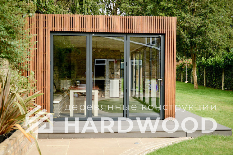 Каркас и стойки традиционно выполняем из пород, устойчивых к влаге и нагрузкам. Внешние обшивки — из имитации бруса или планкена; для настилов отлично работают лиственница и композитные террасные доски. Важна не «марка на бумаге», а грамотная проклейка узлов и защита от капиллярной влаги.