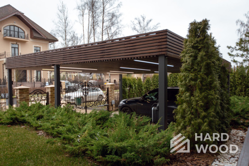 Навес для машины на дачу из дерева с хозблоком №73 - фото 1125