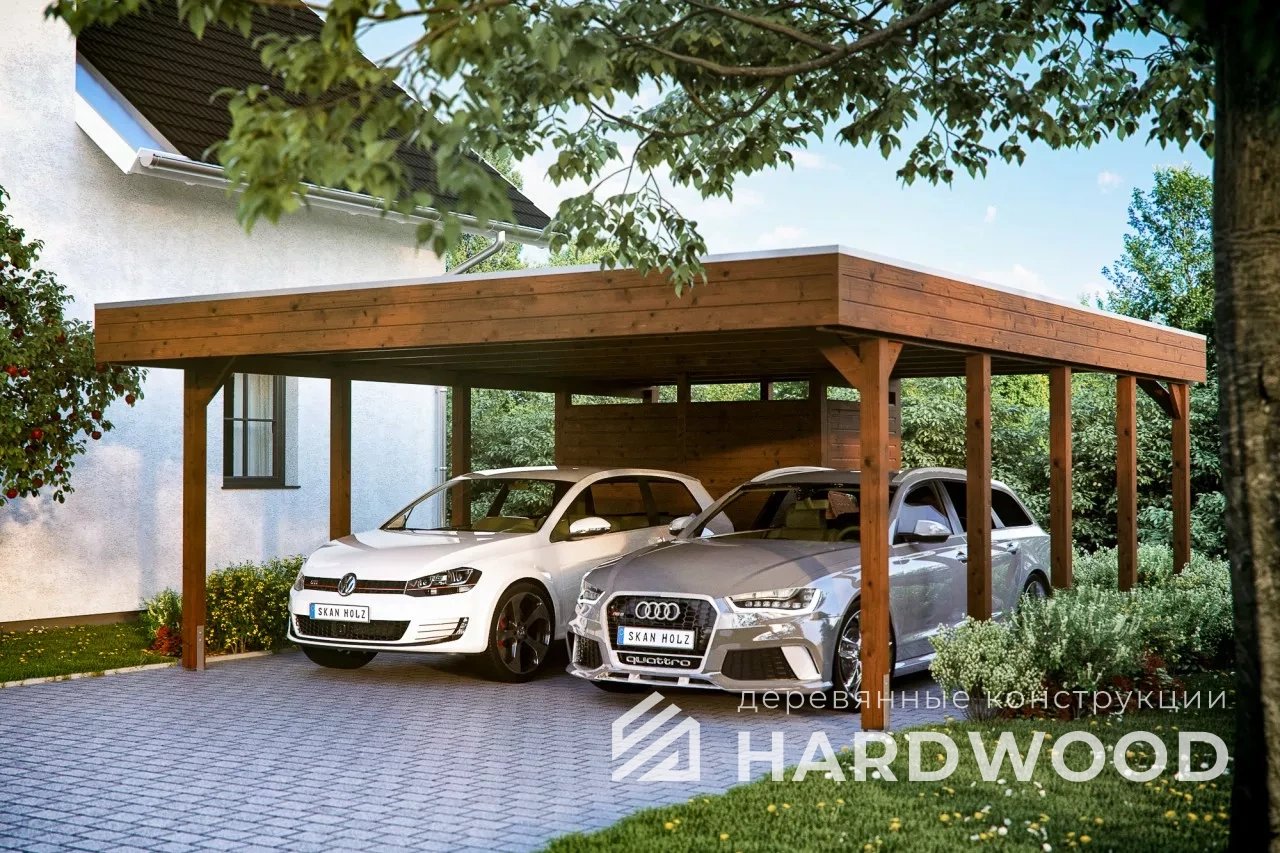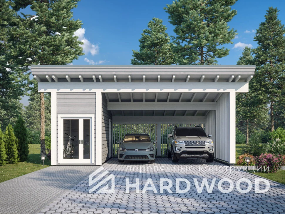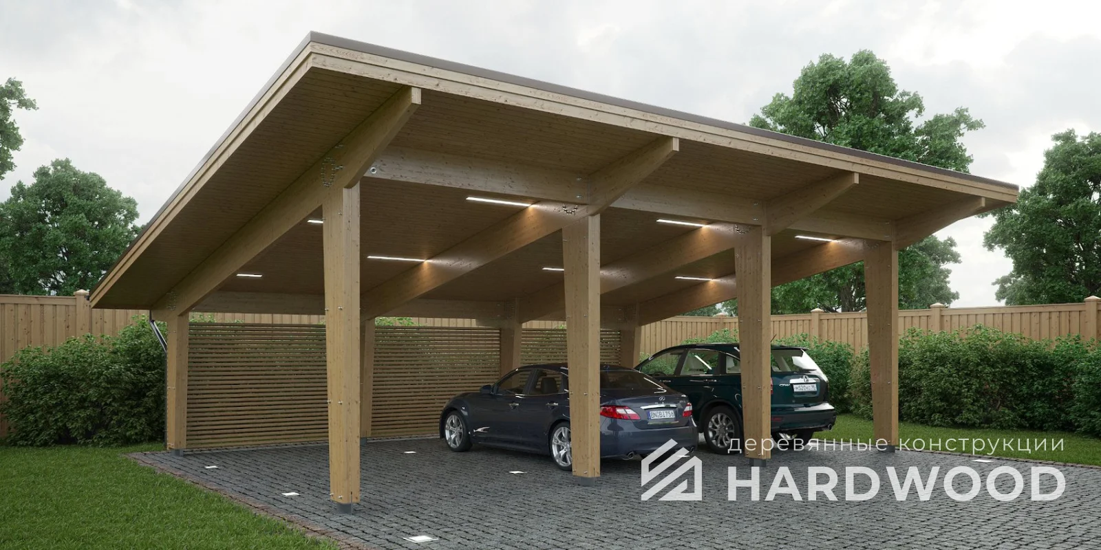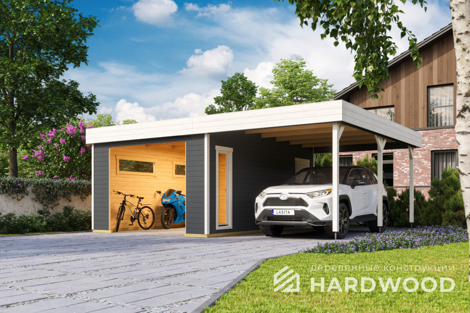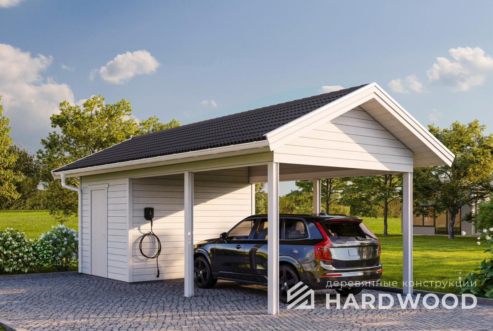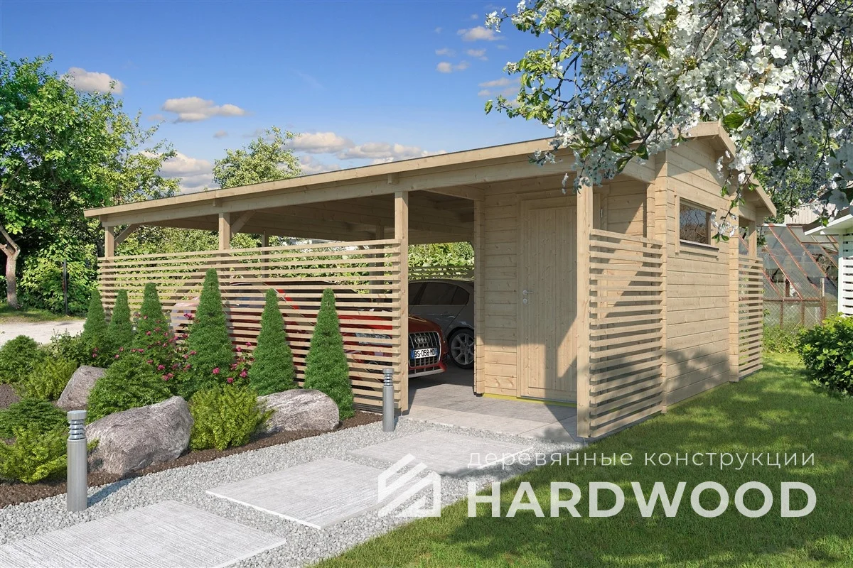 Строим деревянные навесы с хозяйственным блоком для автомобилей