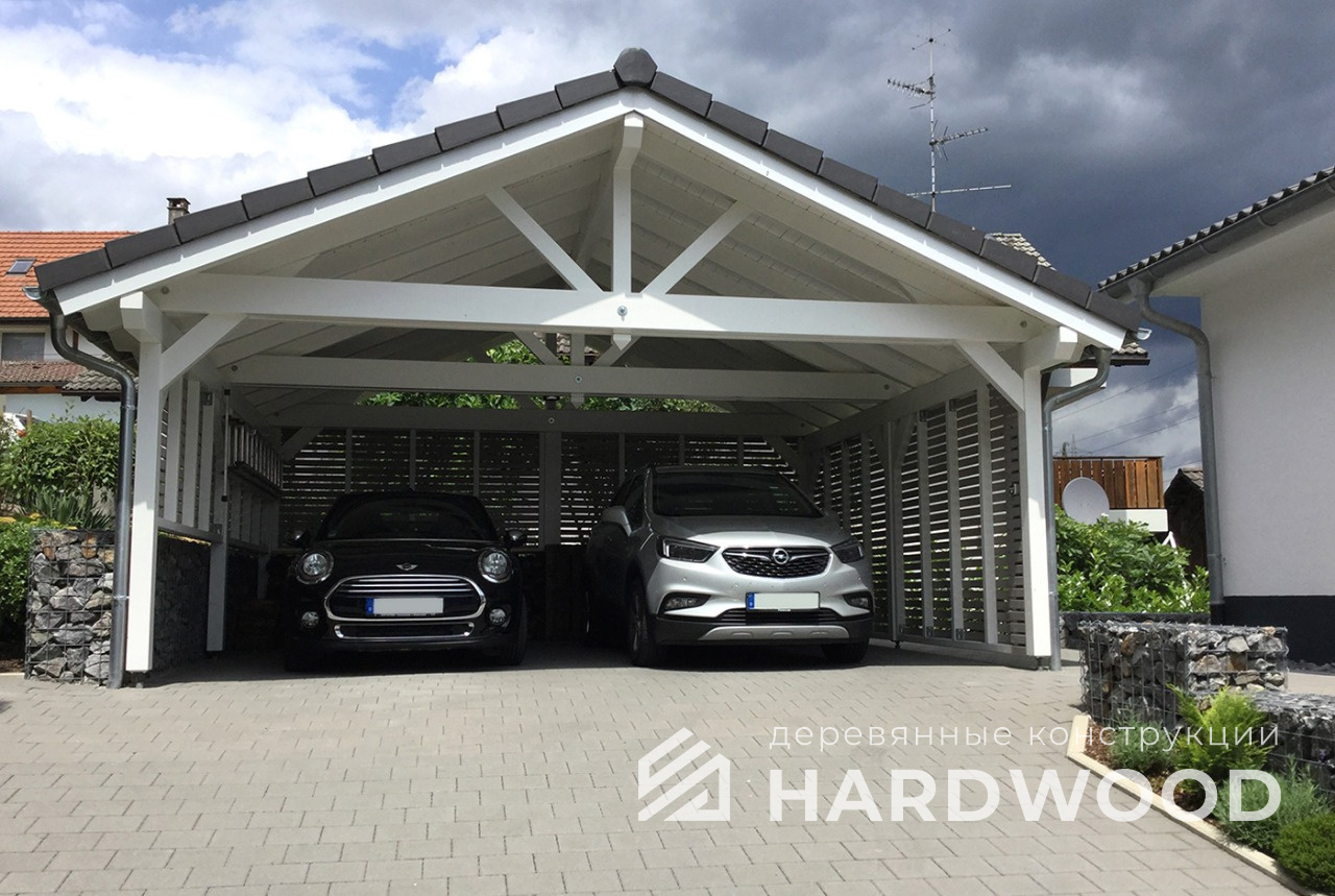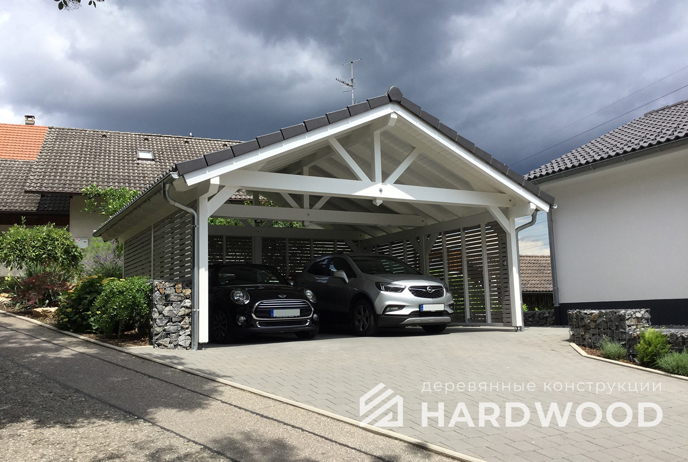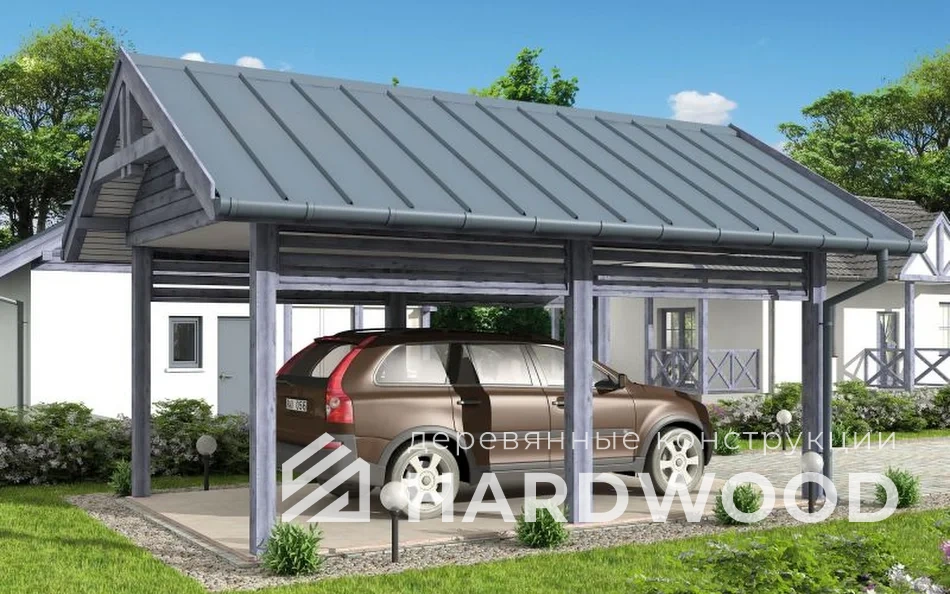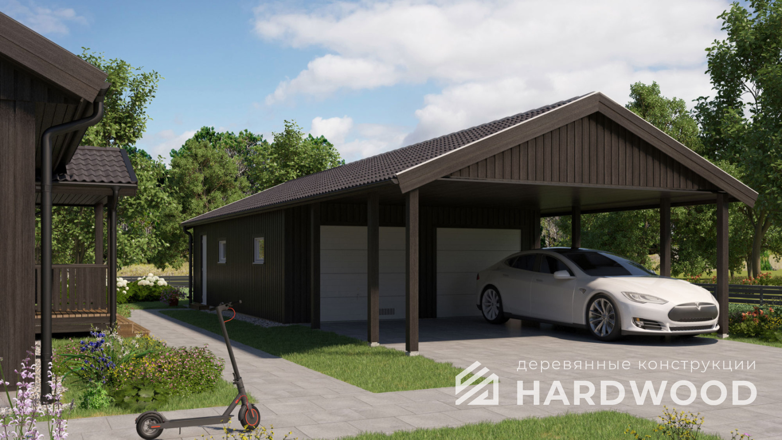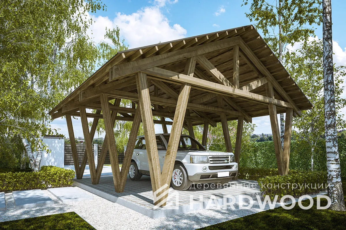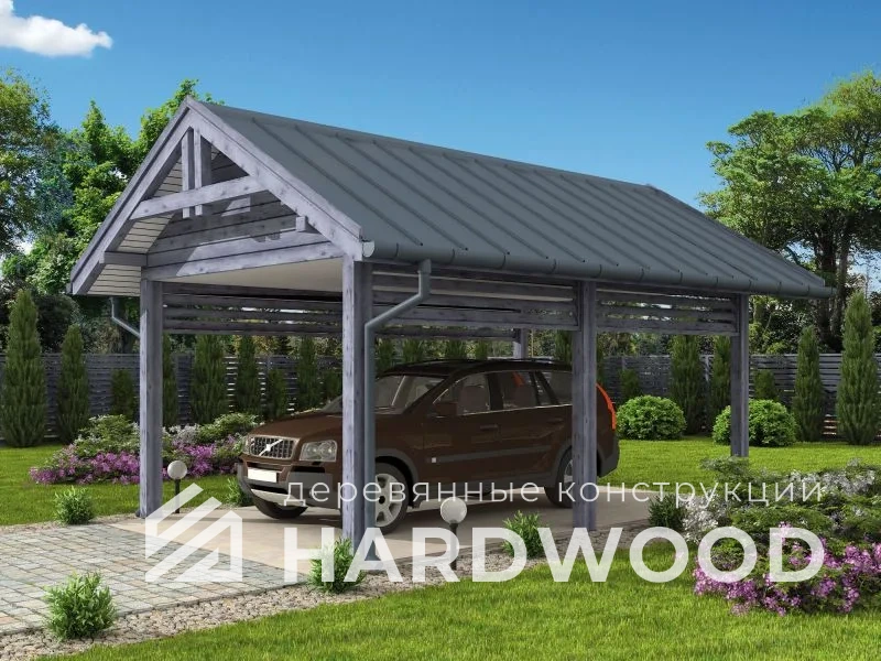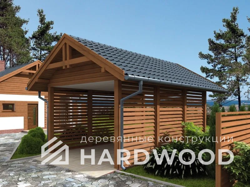 Строим деревянные навесы с хозяйственным блоком для автомобилей