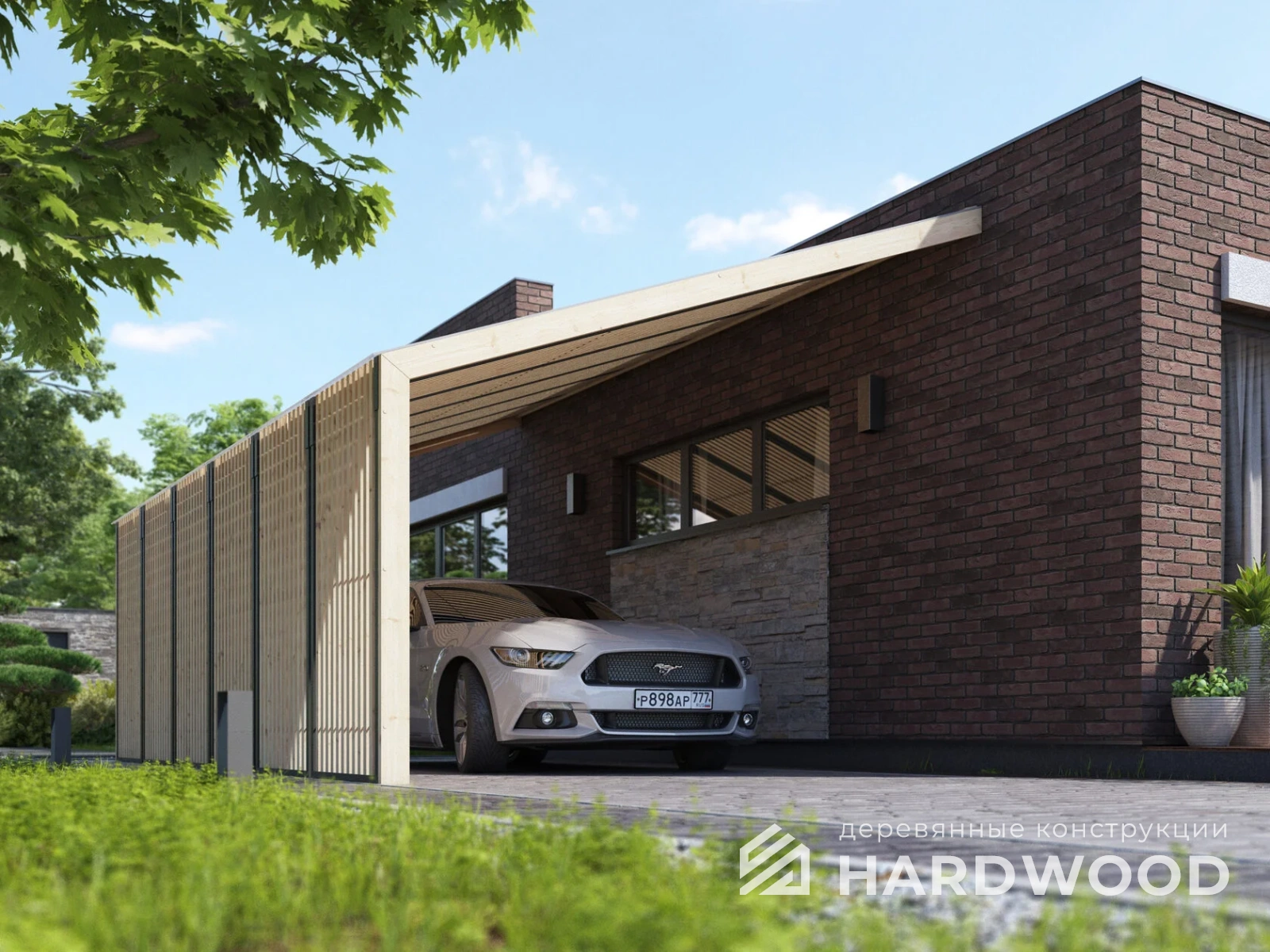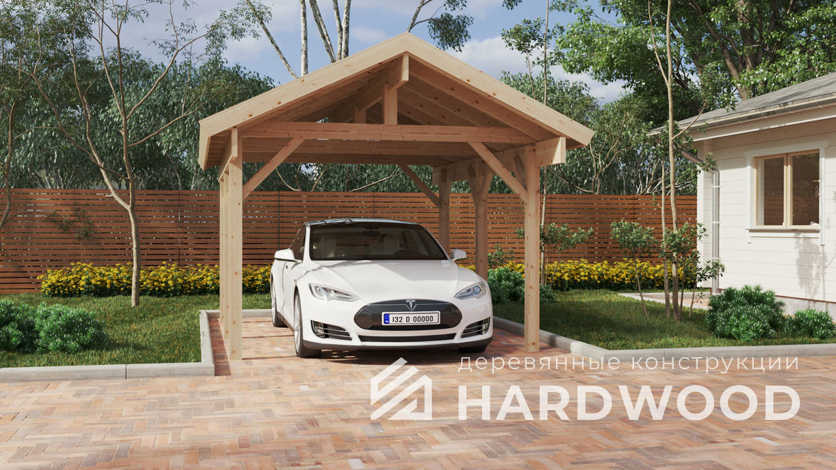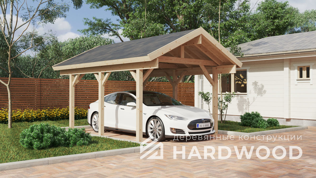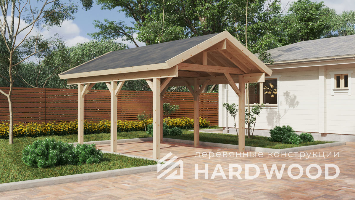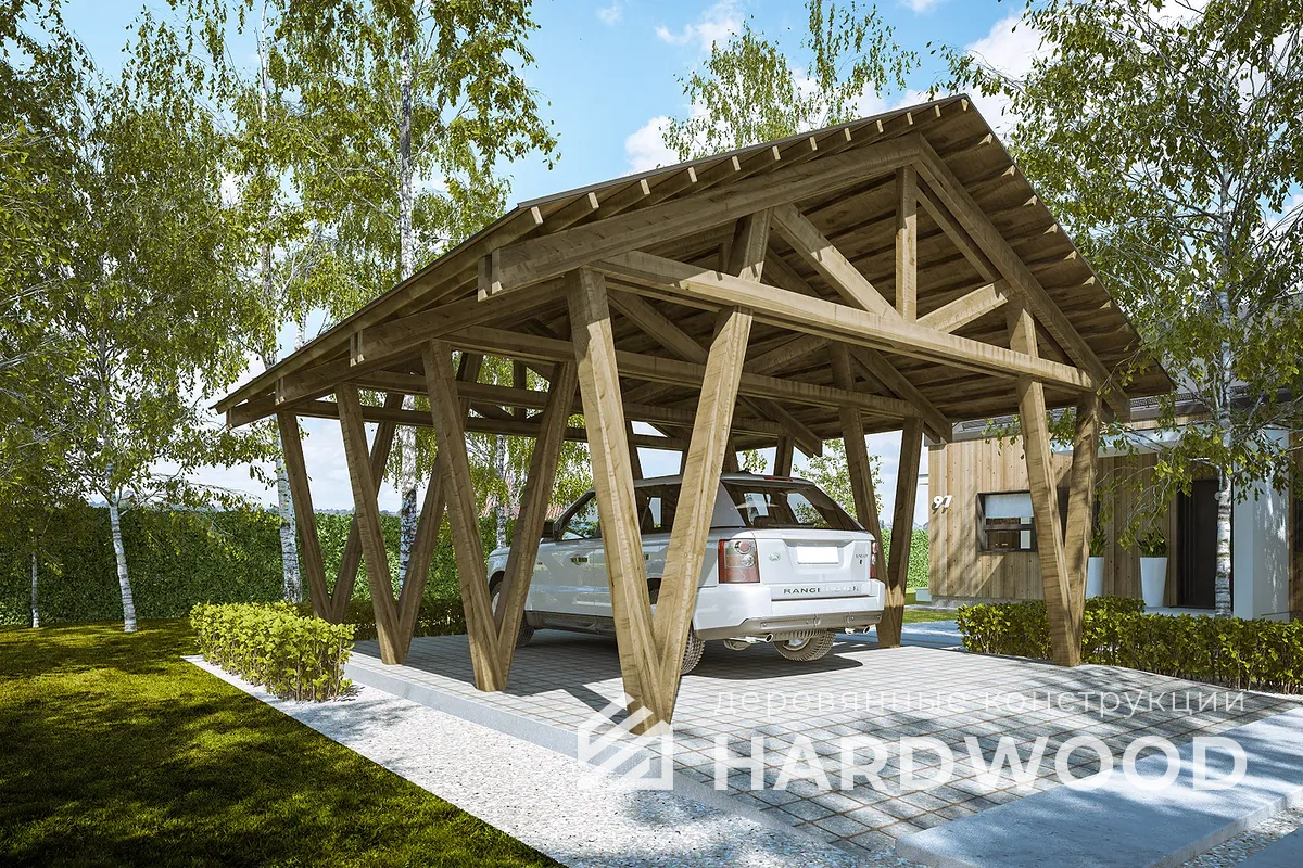 Навес для автомобиля из клееного бруса №75 - фото 1206