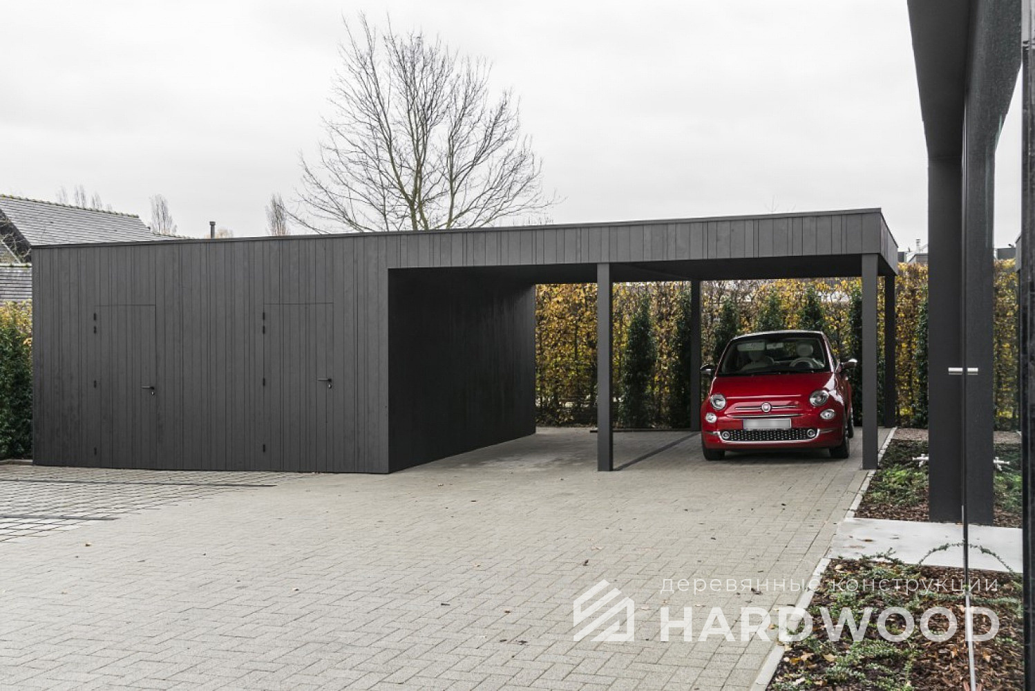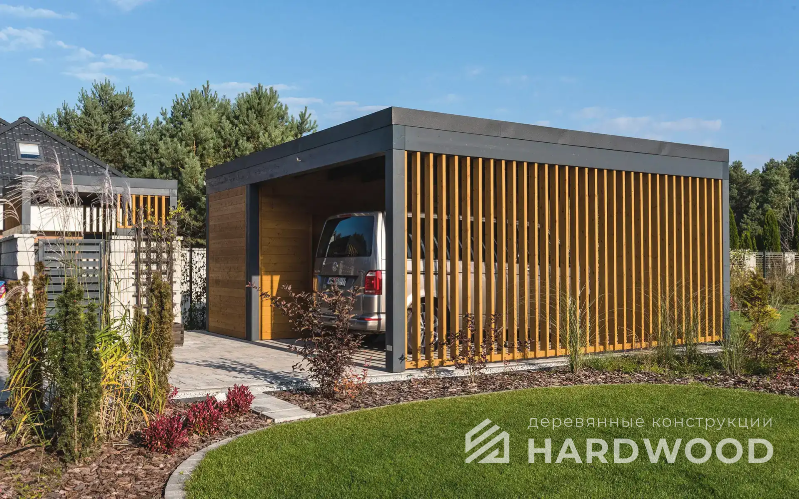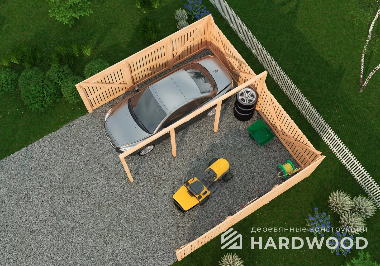 Навес для машины на дачу из дерева с хозблоком №73 - фото 1125