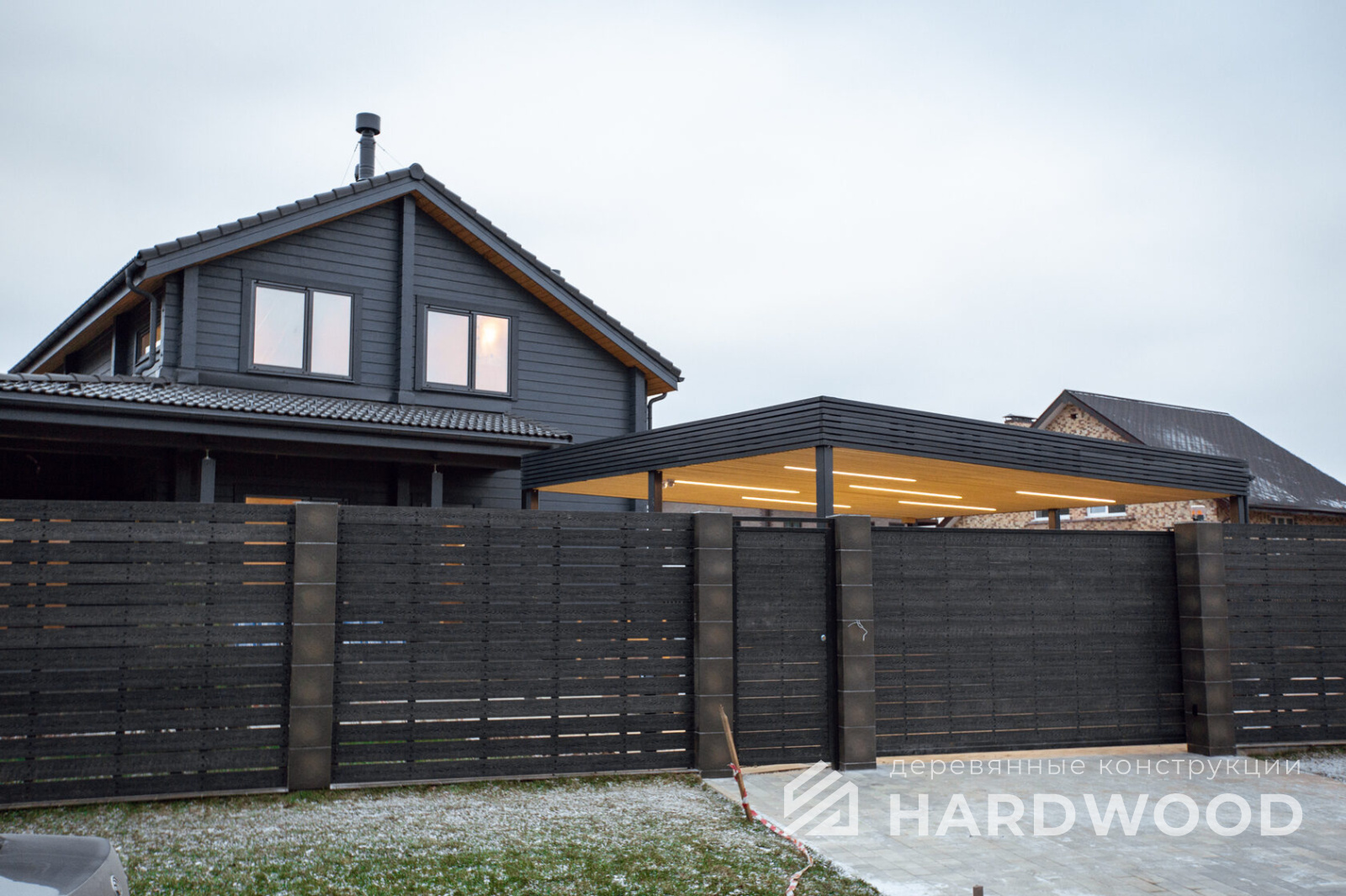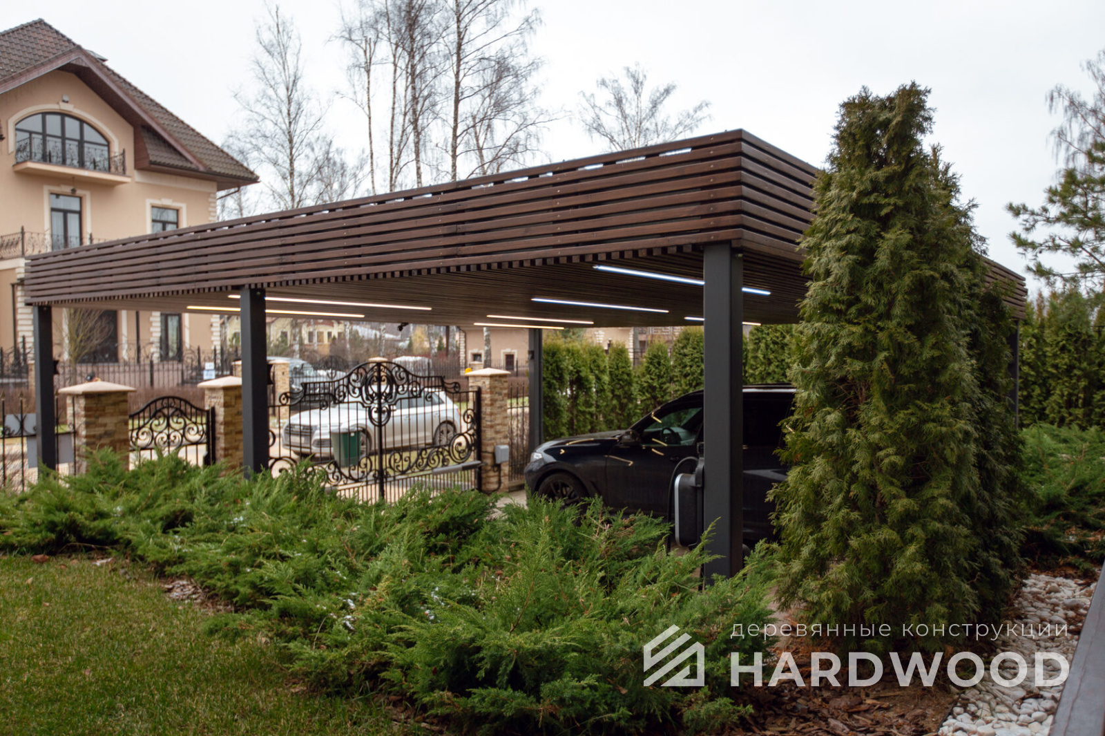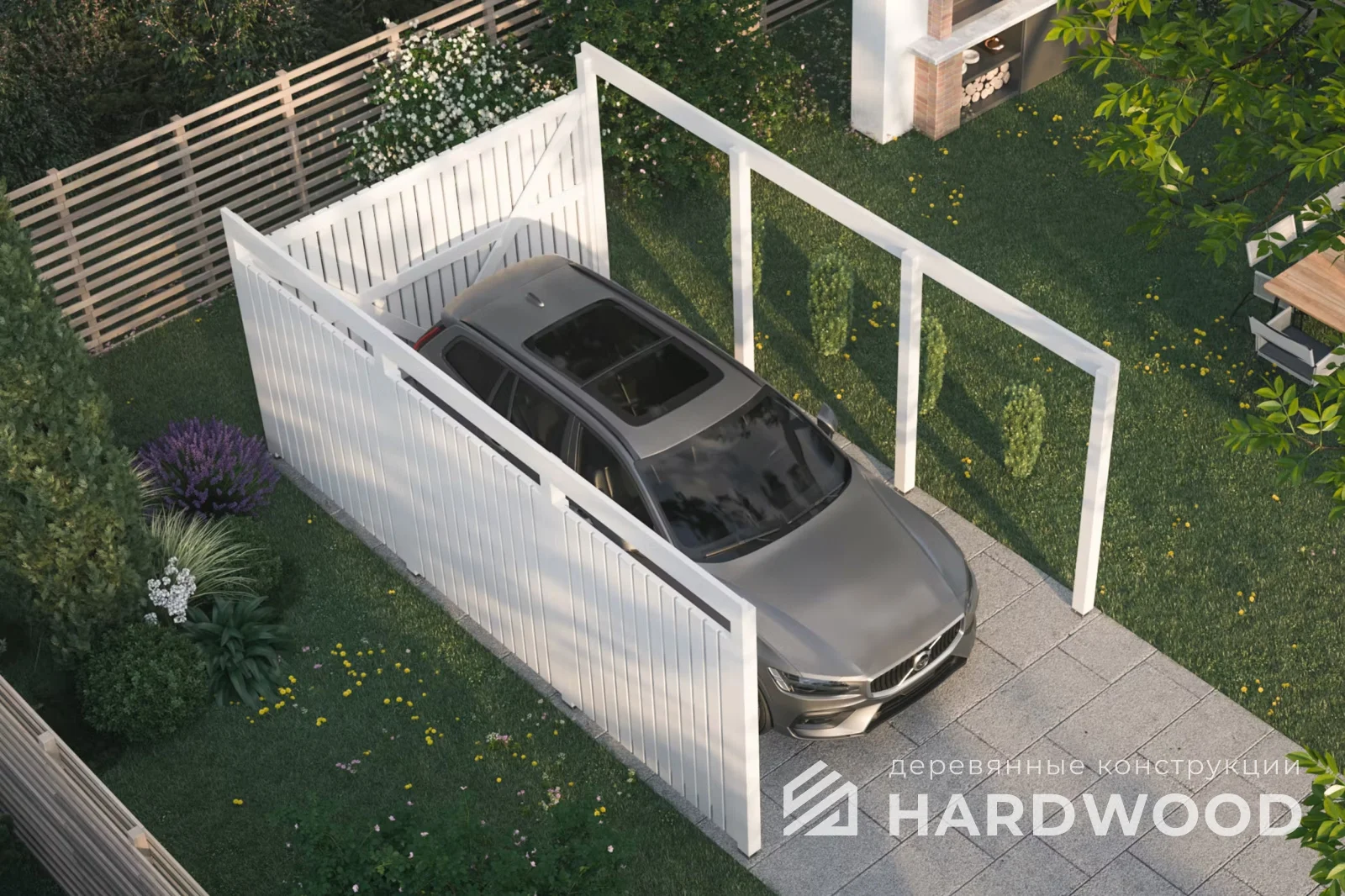Навес для машины на дачу из дерева с хозблоком №73 - фото 1125